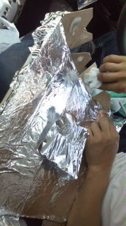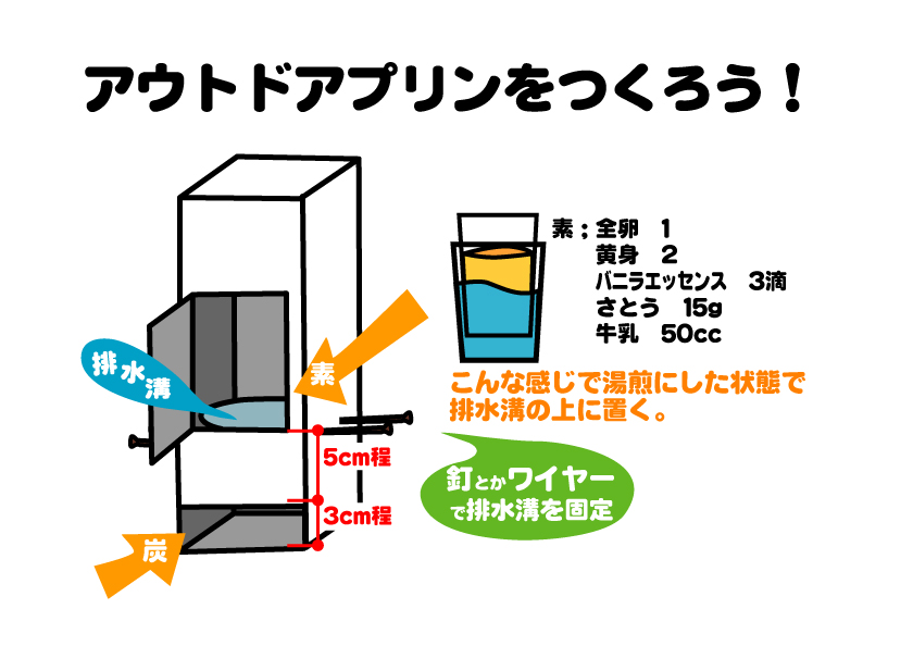 (横からフランケンみたいに釘をさしてプリンを乗せる台を固定します。)